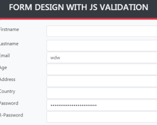 This is an example of a form design with javascript validations. This form can be used during the registration of players or with sports. The bg-dark class is used for the background of the container and complete body. This sets the dark grey background color. Form when submitted verifies with the validate method. FormGroup elements are used to create the form with fields like first and last name, email, age, address, country, password, interests. The interests are marked with the custom radio button. A CSS style sheet is defined for a row, button, and form groups. The script has a validate function which validates the input of each input tag. It sends an alert message if the input values are incorrect.