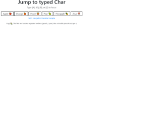 This is a keypress event where a certain element gets focused when the key that starts that element is pressed down. This is written in JavaScript. To handle the keypress event, the “key-down” function has been used in and to validate it to work only for alpha characters, a list has been declared with all the alphabetical characters with its Hexa value. There are three functions used here; handleAlphaKeyPresses, matchElemToKey and cycle focus and the use of them are respectively, to apply the keypress event, to find all the matching elements and return them and to make the “li > an” element. CSS styles have been used to apply mouse hover styles with the “hover” class and to apply the styles for the selected div with the “focus” class.