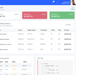 This is an example of a bootstrap dashboard interface with hover effects, designed using HTML, CSS, JavaScript, and bootstrap framework 4. The icons, images, and fonts are imported to the form with their URLs. An external CSS file has been imported for CSS styling. The concept of Lists has been used with UL and LI components. UL element has been used with the child elements of LI to display the details in an orderly manner. The tooltip feature has been enabled using JavaScript functions. The product images are given a width of 50px. The content of the form is inserted into a column layout. The tooltip feature is enabled for the comment table on the pencil icon to display a message in a hover event. A text-style for the Comments table is set as uppercase to automatically convert the text to uppercase. Hover effects have been implemented on buttons and cards.