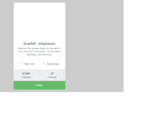 This is an example of a bootstrap user profile card with hover effects, designed using HTML, CSS, and bootstrap framework 4. The images and fonts are imported to the code with their URLs. The colors are predefined as variables and set as $box-shadow as 0 2px 2px 0 rgba(0, 0, 0, 0.14), 0 3px 1px -2px rgba(0, 0, 0, 0.12), 0 1px 5px 0 rgba(0, 0, 0, 0.2), $blue-gray-700 as #455A64, $blue-gray-800 as #37474F, $blue-gray-50 as #ECEFF1, $blue-gray-100 as #CFD8DC, $green-400 as #66BB6A, $green-500 as #4CAF50, $blue-500 as #2196F3, and $light-border as 1px solid #ddd. The font family for the form is set as font-family: ABeeZee, sans-serif. The body of the form is given the styles of background as #ccc, padding as 20px, and color as $blue-gray-700. The profile picture is given a border-radius of 50% to get the circular shape. The location and email links take the color of $blue-500 in a hover event, whereas the followers an following buttons take the color $blue-gray-100. The follow button is given the cursor style as pointer to get the hand cursor effect, and the color $green-400, which changes to $green-500, in a hover event.