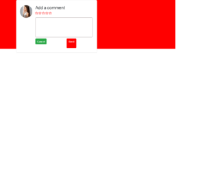 This is another example of a comment section with rating stars, designed using HTML, CSS, and Bootstrap framework 4. The profile image and font styles are imported to the code with the URLs. The rating stars are created as radio buttons. The body of the form is given the styles of display as grid, place-items as center to place the card in the center, font-family as 'Manrope', sans-serif, and background as red. The comment card is given a width as 450px, and a border-radius as 6px. The text area is given a border as 1px solid #ad9f9f. The send button is given a background color as #ff0000, which changes to #f50202, in a hover event. The rating buttons are given a cursor style as pointer to get the hand cursor effect in a hover event. The rating icons take a fill effect of #ff0000, in hover and active events.