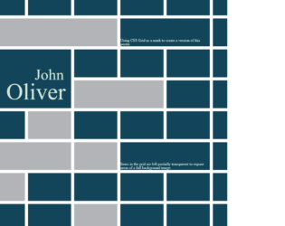 This is an example of a web form where the CSS grid is used as a mask to create a poster. It is designed using CSS, HTML, and Bootstrap framework 4. The CSS grid is displayed in 14 rows, which are defined in HTML. The background image is imported to the code with its URL. The background color of the HTML form is given as #124559, with the background-size set as 100vw. The body of the form is given a style set of font-family as 'Roboto Slab', serif, font-size as1.8vw, and color as #D3E6D9. The name of the person is displayed with the styles font-family as 'Rozha One', serif, position as relative, and font-size as 5vw. The items in the grid are left partially transparent to expose areas of the background image by changing the placement of the grid rows and columns with changing the value of grid-column-end: span and grid-row-end: span. The images and bootstrap styles are imported to the code with their URLs.