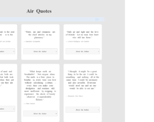 This is an example of a quote cards grid layout with the content displayed in an accordion, designed using HTML, CSS, JavaScript, and Bootstrap framework 4. The quotes are imported to the code with the URL, whereas the JavaScript functions have been used to implement the accordion expand feature. The body of the form is given the styles of background as #e6e6e6, padding as 50px 0, font-family as 'Noto Serif', serif. The quote cards can be displayed either in card layout or row layout. The quote grid is given the styles of max-width as 1000px, margin as 0 auto, font-family as 'Noto Serif', serif, theme-color-primary as #383838, and color as #414141. The quote caption has the styles of color as #414141, font-size as 40px, and font-weight as bold. The quote cards take the styles of border-radius as 10px, margin as 10px, and box-shadow as 0 4px 8px 0 rgba(0, 0, 0, 0.1), 0 6px 20px 0 rgba(0, 0, 0, 0.09), in the card layout. The accordion of the card is given the styles of position as relative, display as block, background as #f7f7f7, border-radius as .25em, cursor style as pointer to get the hand cursor effect, margin-bottom as .125em, padding as .75rem 1em, z-index as 20, border as 1px solid #cccccc, text-align as center, and font-size as 13px, which takes the background color of #ccc, in a hover event.