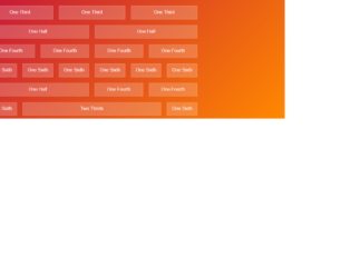 This is an example of a simple column preview with text in them, designed using CSS and HTML. The form is divided into six sections based on their positions and sizes. There are six rows of columns with 5 different sizes which are; One Third, One Half, One Fourth, One Sixth, and Two Thirds. The body of the form is given the style set of font-family as 'Raleway', sans-serif, padding as 10px, and background color as linear-gradient (135deg, #b04, #f80) fixed. The columns have the styles of padding as 10px 0, background-color as rgba(255, 0, 0, 0.25), text-align as center, border as 1px solid rgba(255,255,255,0.25), background-color as rgba(255,255,255,0.2), and color as rgba(255,255,255,0.9). A section is given the styles of max width as 740px, margin as 0 auto, and display as flex.