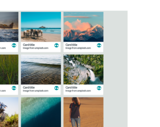 This is an example of a bootstrap grid layout used to display thumbnail details with hover effects, designed using CSS, HTML, and Bootstrap framework 4. The background images of the cards are imported to the code with their URLs. The number of grid items per row is defined as 3, and the gap between each item is set as 1, in CSS. The colors are predefined as primary-color: #333, secondary-color: #fff, and font-color: #fff. For the browser that does not support the grid layout, the background color is set as #00d2ff. The font family for the form is given as 'Roboto', sans-serif. The title of the form is given a style set of color as white, font-size as 30px, text-transform as uppercase to automatically convert the text to uppercase, and font-weight as 700, whereas the subtitle of the form is given the styles of font-size as 18px, and font-weight as 300. In a hover effect, the first card takes a transform effect of transformSkewScale (-45deg, 1), and a transition effect of (all 400ms cubic-bezier(0.175, 0.885, 0.32, 1.275)), whereas the second and third ones take transformSkewScale(45deg, 1), and transformSkewScale(45deg, 0) effects, respectively.