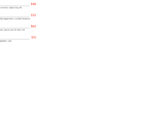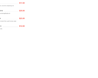 This is an example of another restaurant food menu layout, designed using HTML, CSS, and Bootstrap framework 4. The fonts, Bootstrap and CSS styles are imported to the code with the URLs. The menu items are added to a table layout. The menu item description section is given the styles of padding-right as 5px, font-family as 'Roboto Condensed', sans-serif, font-weight as bold, text-align as left, font-size as 20px, display as table-cell, width as 10%, line-height as 15px, and text-align as left. The dotted line is given the styles of display as table-cell, width as 88%, and border-bottom as 1px dotted #000. The menu item names are added as links in HTML, to be redirected into an external page. The section of the menu item has the styles of text-align as left, font-size as 24px, color as #F44334, and font-weight as 600.