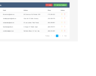 This is an example of a bootstrap CRUD (Create, Read, Update, Delete) data table for a database with modal form, designed using HTML, CSS, and JavaScript. Bootstrap style sheets including the fonts are imported to the form with their URLs. The body is given a styles set of color as #566787, background as #f5f5f5, font-family as 'Varela Round', sans-serif, and font-size as 13px. The table title is given the styles of padding-bottom as 15px, background as #435d7d, color as #fff, padding as 16px 30px, margin as -20px -25px 10px, and border-radius as 3px 3px 0 0 whereas header two is given a margin of 5px 0 0, and font-size of 24px. The table has the styles of font-weight as bold and color as #566787. The background colors of edit and delete icons are set as #FFC107 and #F44336, respectively. The concept of Lists has been used with the LI component to display the details in an orderly manner. Once checked, the checkbox takes the color #03A9F4. Tooltip style has been used to display a popup in a hover event on edit and delete icons whereas JavaScript functions are used to implement tooltip activation and checkbox implementation.