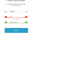 This is another example of a registration form with validation, designed using HTML, JavaScript, CSS, and Bootstrap framework 4. The JavaScript methods have been used to validate the user name input field to contain only lowercase characters. The body of the form is given the background color as #FEFEFE, and font-family style as "Helvetica Neue", Helvetica, Arial, sans-serif. The registration container is given a styles of width as 400px, background color as #ffffff, and border as 2px solid #E0E0E0. The title of the form is displayed with a font size of 2.3em, whereas the subtitle is displayed with 1.4em. The text field container is given a width of 370px, and a height of 1.7em. In a focus event, the text field bar takes the background color of #2C9ECA, takes the color of #80BA4E, if a correct input has been entered. If an incorrect input has been entered, the bar cakes the color of #F94033. Source: https://codepen.io/Rabrennie/pen/VjArka