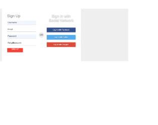 This is a simple signup form with login via social media accounts option, designed using HTML and CSS. The input type ‘text' has been used for the text fields with placeholders set for the elements to display a hint on the expected inputs. The background image on the right-side panel has been added by setting the image URL in CSS. The position has been set as absolute, top as 0, right as 0, box-sizing as border-box, padding as 40px, width as 300px, height as 400px, background-size as cover and background-position as center. To get the "OR" label on top of the layer, CSS styles has been used with values: position as absolute, top as 180px, left as 280px, with as 40px and height as 40px. The background color has been set to #efefef whereas the border-radius is set to 50% to display the label as a circle.