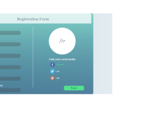 This is another example of a stylish registration form, designed using HTML, CSS, and Bootstrap framework 4. The font style has been imported to the code with its URL. The background color of the form is given a linear gradient color. The registration container is given a background color as linear-gradient(0deg, rgba(19, 84, 122, 0.7) 0%, rgba(128, 208, 199, 1) 100%), width and height as 900px and 600px, and a box-shadow style as 0px 5px 32px 0px rgba(0,0,0,0.75). The title of the header section has the styles of font-family as Comfortaa, font-size as 30px, font color as #708090, text-align as center, and font-weight as 600. The input text fields are given the styles of background color as #444444, width as 250px, height as 30px, font-size as 16px, font color as rgba(0,0,0,0.65), font-family as 'Open Sans',sans-serif, font-weight as 600, and a filter as alpha(opacity=30). The input fields take the font color of rgba(255,255,255, 0.8), and the background color of rgba(0,0,0, 0.5), in a focus event.