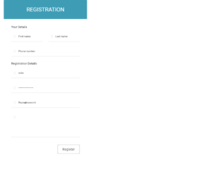 This is an example of another registration form, designed using CSS, HTML, and Bootstrap framework 4. The Bootstrap and font styles have been imported to the code with their URLs. The form is given a background color as #e4e6e6, and a font style as 'Roboto', sans-serif. The header section of the form has been given the styles of background color as #3f9cb5, font-size as 30px, font color as #fff, text-align as center, and text-transform style as uppercase to automatically convert the text to uppercase. The subheading of the form is displayed with the styles of font-size as 16px, font color as #222222, text-transform style as capitalize to make each letter of the word capital, and font-weight as 400. The input text fields are given the styles of height as 50px, font-size as 14px, font color as #2b2a2a, border-bottom as 1px solid #ccc, and font-weight as 400. The text fields take the border color of #3f9cb5, in a hover event. The 'Register' button is given a border color as 2px solid #ccc, which gets changed to #3f9cb5 on hover.