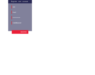This is an example of a responsive registration form, designed using CSS, HTML, and Bootstrap framework 4. The background image and the font style has been imported to the code with their URLs. The body of the form is given a font family style as 'Droid Serif', serif. The title of the form is displayed with the styles of text-align as center, line-height as 3rem, height as 3rem, background as rgba(3, 3, 55, 0.7), font-size as 1.4rem, and font color as #d3d3d3. The input text fields are given a transparent background, border-left style as 4px solid, and border-color as #FF0000, and font color style as white. The input text fields take the background color of rgba(235, 30, 54, 0.3) in a focus event. The 'Register' button is given the styles of background color as rgba(235, 30, 54, 1), font color as white, and cursor style as pointer to get the hand cursor effect on hover. The input fields have been validated by making them required in HTML.