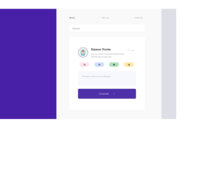 This is a template of an input search with detailed information form, designed using CSS, HTML, and Bootstrap framework 4. The images are imported to the code with their URLs. Media quarries have been used to increase the responsiveness of the form. The body of the form is given a background color of #DEDEE6. The left side container is given a background color of #4820A7, whereas the right side container is given #F9F9F9. The upper tabs are displayed using the styles of font-size as 10px, font-weight as bold, and font color as #C4C4C6. The cursor style for tabs is set as pointer to get the hand cursor effect on hover. The font color of the tabs gets changed to #5B5B5B, in a hover event. The user image takes a border effect of 2px solid #d8ff00, in a hover event. The input text field is give a style set of background as #F7F8FD, letter-spacing as 1px, font color as #C4C4C6, font-size as 10px, and font-weight as bold.