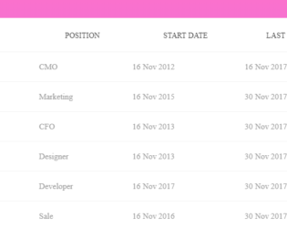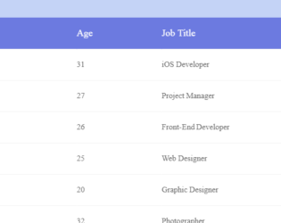 With the larger data to be displayed in tabular format you would require the column header to be fixed. This is a simple table with the data to be displayed in row and column format. The vertical scrollbar is added to all the tables to show the data. The purpose of this example is to show the headers are fixed. Scroll the data vertically and you would see the column headers fixed at the top of the table. CSS sheet defines the style and color to all the tables and headers. JS-pscroll is used to display the scroll bar. The background color, header color and scrollbar color is in perfect sync for each table. These tables can be used for tabular data format with larger dataset displayed on each page. You can use these tables and tweak it to your needs.