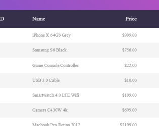 This is the classic example of a responsive bootstrap table, which can be used to display data with various size of the web page. You can use this table design in the sites which can be used in mobile, IPad or desktop versions. The table is wrapped under the classes which gives it a responsive behavior. The table is divided into header and body, header division contains the column names marked with class “table-header” and body division is made up of rows containing the data for the given columns. By changing the display size of the web page you can see the change in the display of each data. The data of each row is displayed with the column name on to the left side. The CCS style defines the look for each class. Media queries are defined to make the table responsive.