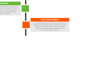 This is another template of a timeline view designed with HTML and CSS. The body of the timeline is designed with CSS with its values set as font-family to Roboto', sans-serif, and padding to 20px 0. The timeline tree has been assigned a color of #333, height as 100%, width as 15px, border-radius as 10px and position as absolute. The background colors of the timeline labels are set as #0985f9, #68B73A, #ff5500, and #8710d9 respectively. The font size of the main timeline title is set as 18px whereas the font size of the label title is set as 20px and description to 14px. The label title is given a style of Text transform as Uppercase to convert the text to uppercase always. The icons have been imported to the form with the CSS framework Font Awesome.