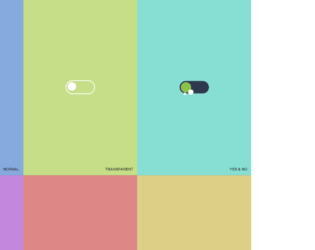 This is an example of a toggle buttons layout with animations, designed using HTML, CSS, and Bootstrap framework 4. The icons and CSS styles are imported to the code with their URLs, whereas media queries have been used to increase the responsiveness of the form. The form consists of eight toggle button containers named Normal, Transparent, Yes & No, Gravity, Pancake Stacks, Doggo Wants a Treat, Kobe Bryant Tribute, and Beer Pong. The body of the form is given a background color of #2e394d. The toggle button containers are given eight different background colors which are #dec387, #de8797, #87aade, #c5de87, #87ded2, #c487de, #de8787, and #decf87. The title of the toggle button container is given the styles of font as 500 14px 'Rubik', sans-serif, letter-spacing as .5px, text-transform as uppercase, and text-shadow as 0 1px 1px rgba(0,0,0,0.4). The toggle buttons are given the styles of width as 7em, background as #2e394d, height as 3em, border-radius as 50px, transition as all .3s ease, transform-origin as 20% center, and cursor as pointer to get the hand cursor effect in a hover event. The toggle buttons are given different animations to be generated in a checked event.
