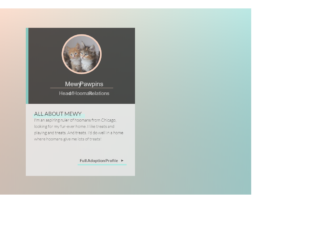 This is an example of a simple user profile card with hover effects, designed using HTML, CSS, and Bootstrap framework 4. The image is imported to the code with its URL, whereas media quarries are used to increase the responsiveness of the form. The body of the form is given the styles of min-height as 100vh, and a linear background as linear-gradient(transparent, rgba( 110, 110, 110, .3)), linear-gradient(100deg, rgba(250, 214, 195, .8) 30%, #B0EAE8 120%). The profile card header is given the styles of background as #272727, border-left as 0.625rem solid #97ece1, padding: 1.5em 1.5em 1em, and text-align as center. The image card container is given the styles of display as block, width, and height as 9.5rem, background as rgba(250, 214, 195, 1), and border as 0.375rem solid rgba(250, 214, 195, 1). The image is given a grayscale filter. The profile header title has the styles of color as #f3f3f3, font-size as 1.5rem, margin-top as 0.8em, and font-family as 'Oswald', sans-serif. The paw and heart icons are given a transform style of scale(1.2), in a hover event. The Full Adoption Profile link takes the styles of border-top-color as #222, and border-bottom-color as #fdc1a0, in a hover event.