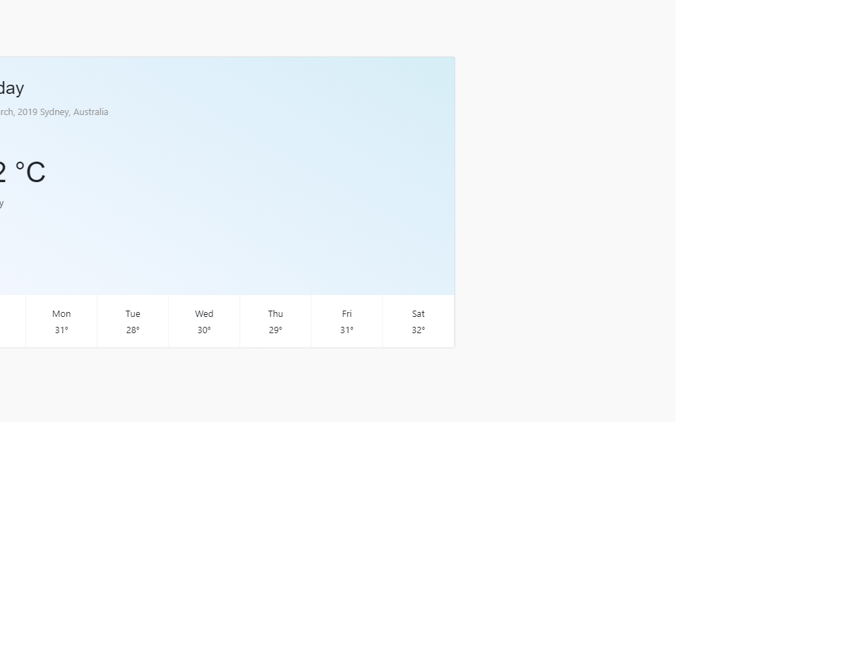 Bootstrap 4 Weather report container with card and material design icons