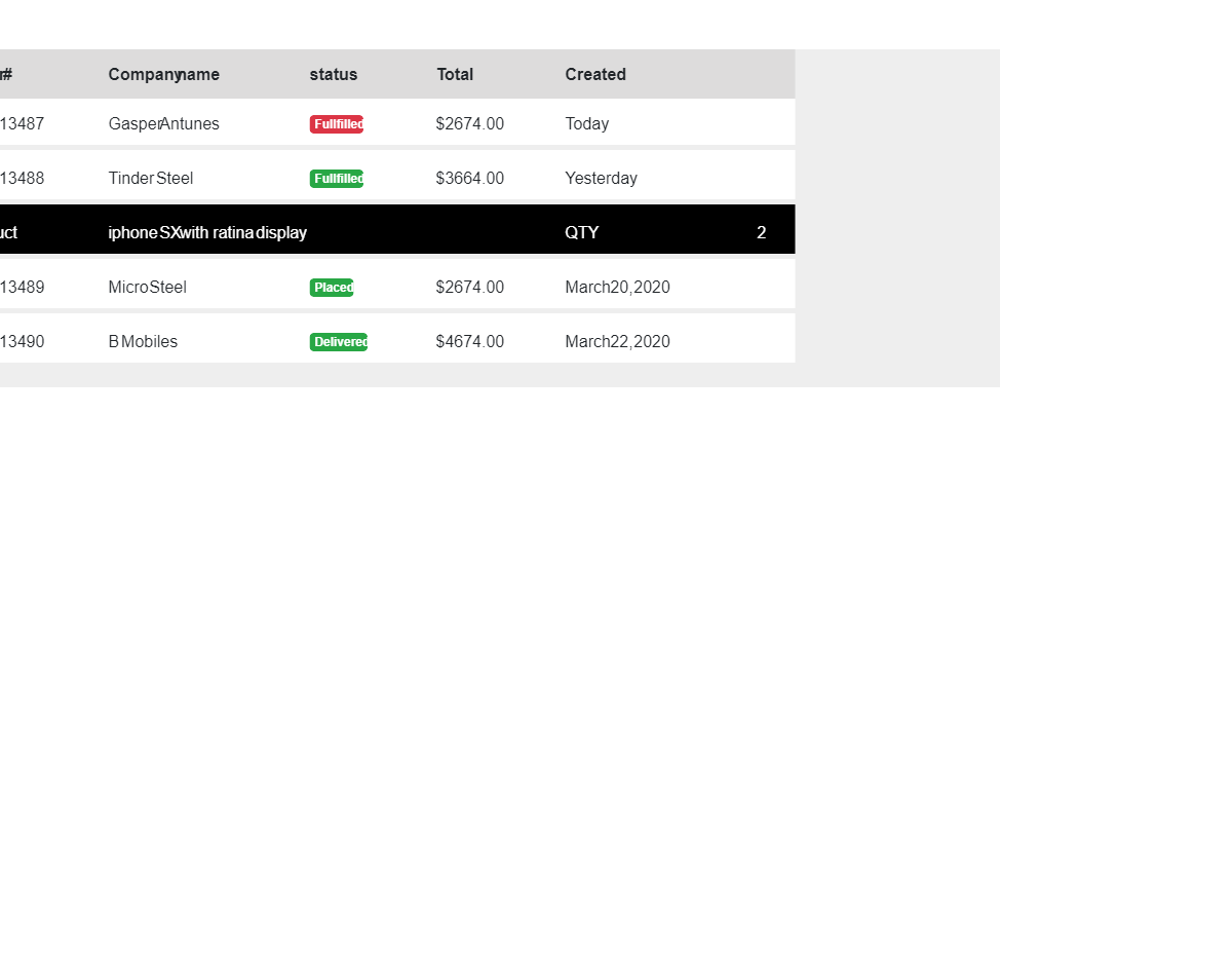 Collapsible/expandable row table