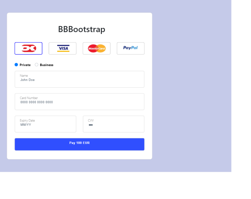 Home Credit card payment form with 4 different options 4caf5bb23755d0d96d398501c969ed72_snippet-preview-image