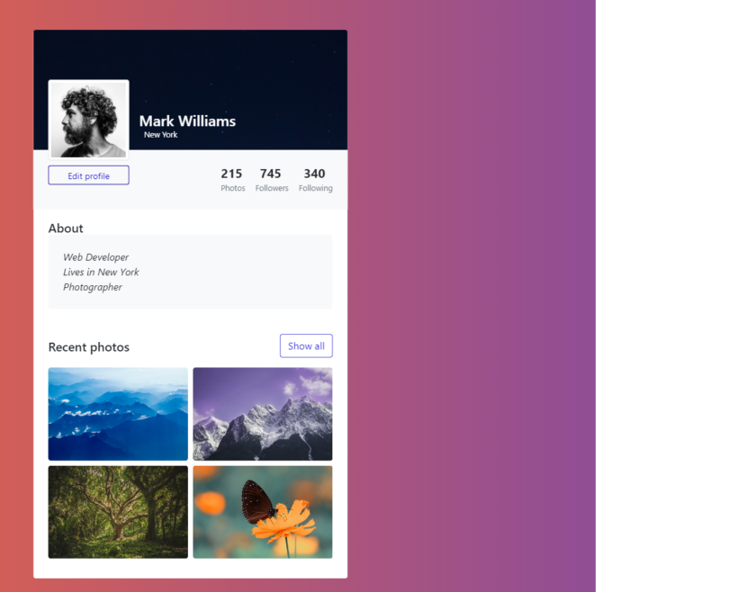 Individual user profile on a social network