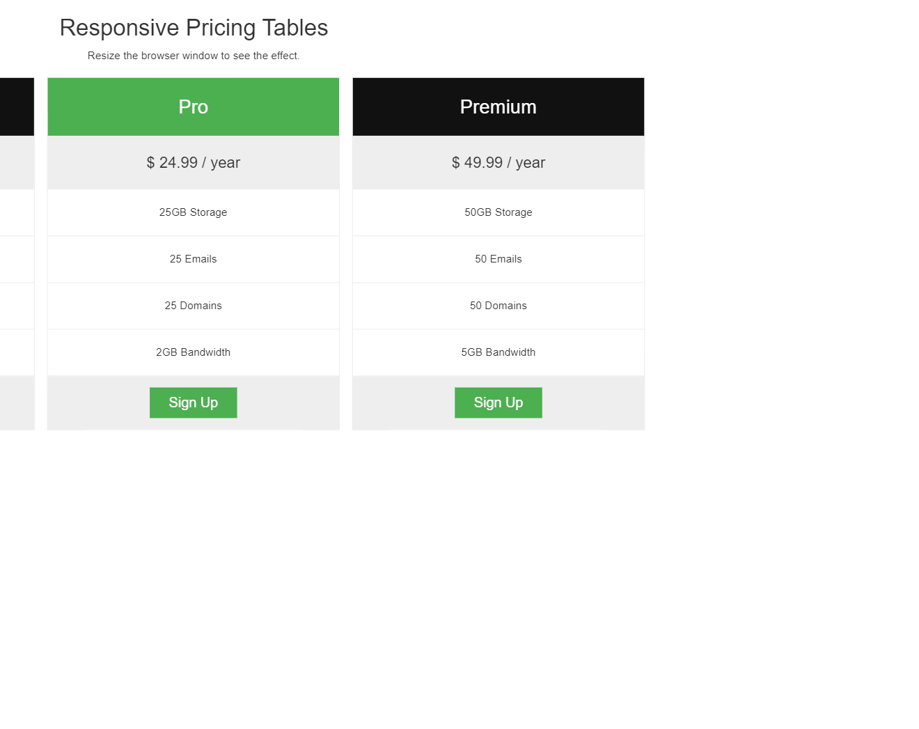 Price Table with Hover Effects