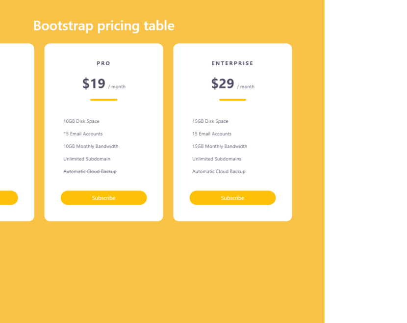 Pricing table with deleted text