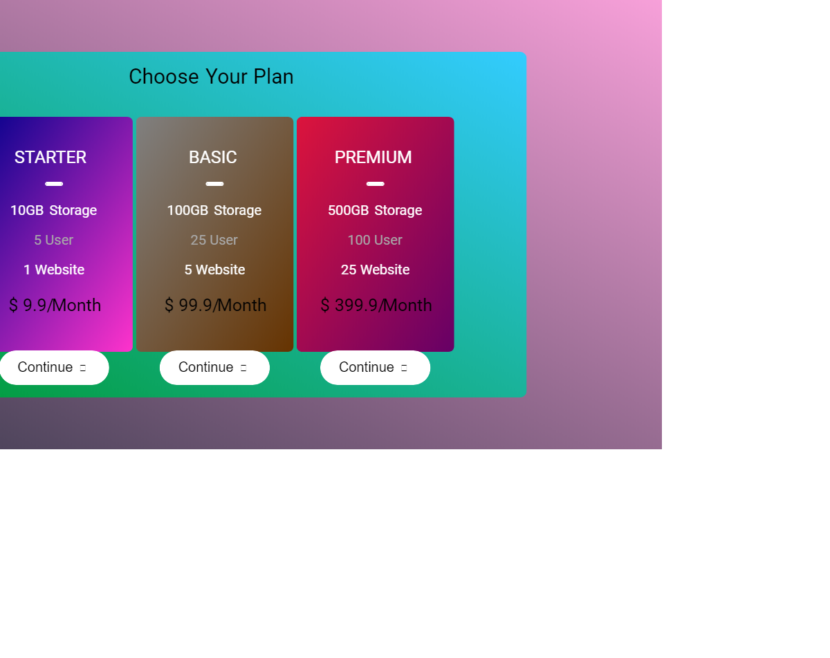 Pricing table with hover animations