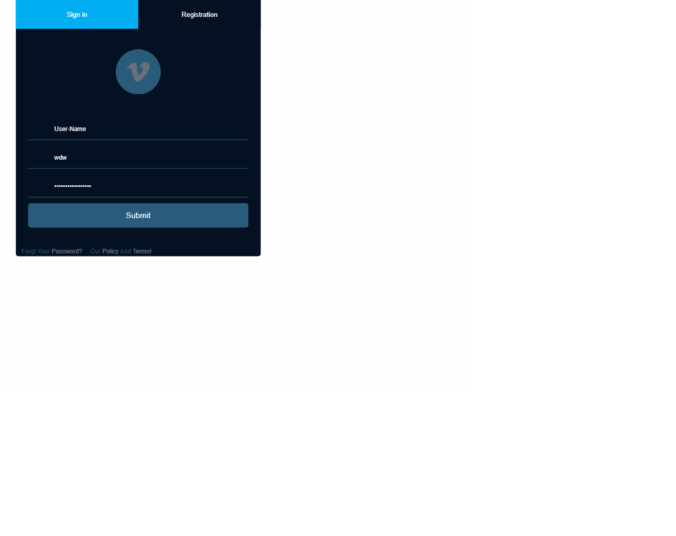 Sign in/ Registration Form