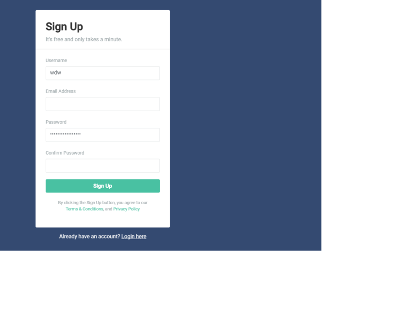 Sign Up Form With a Blue Background