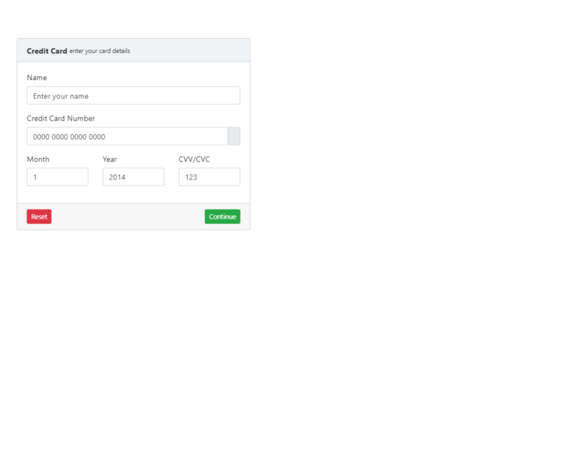 Simple payment credit card form